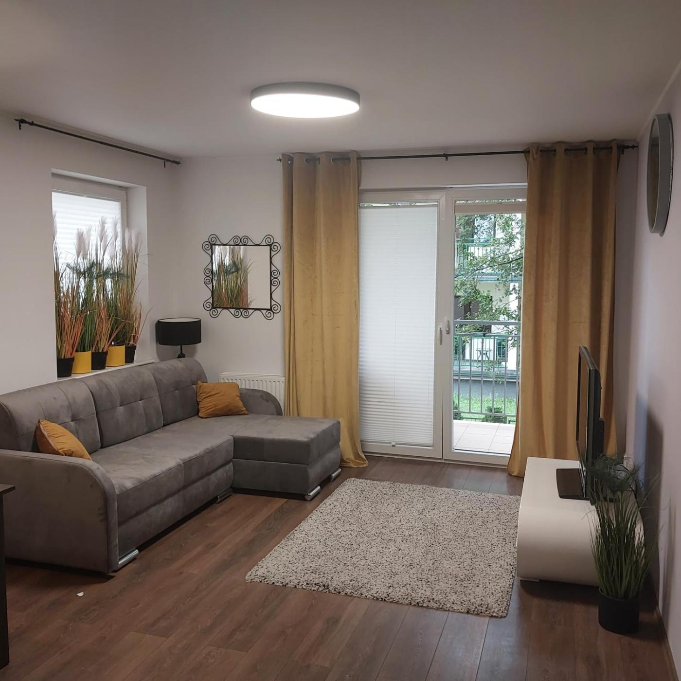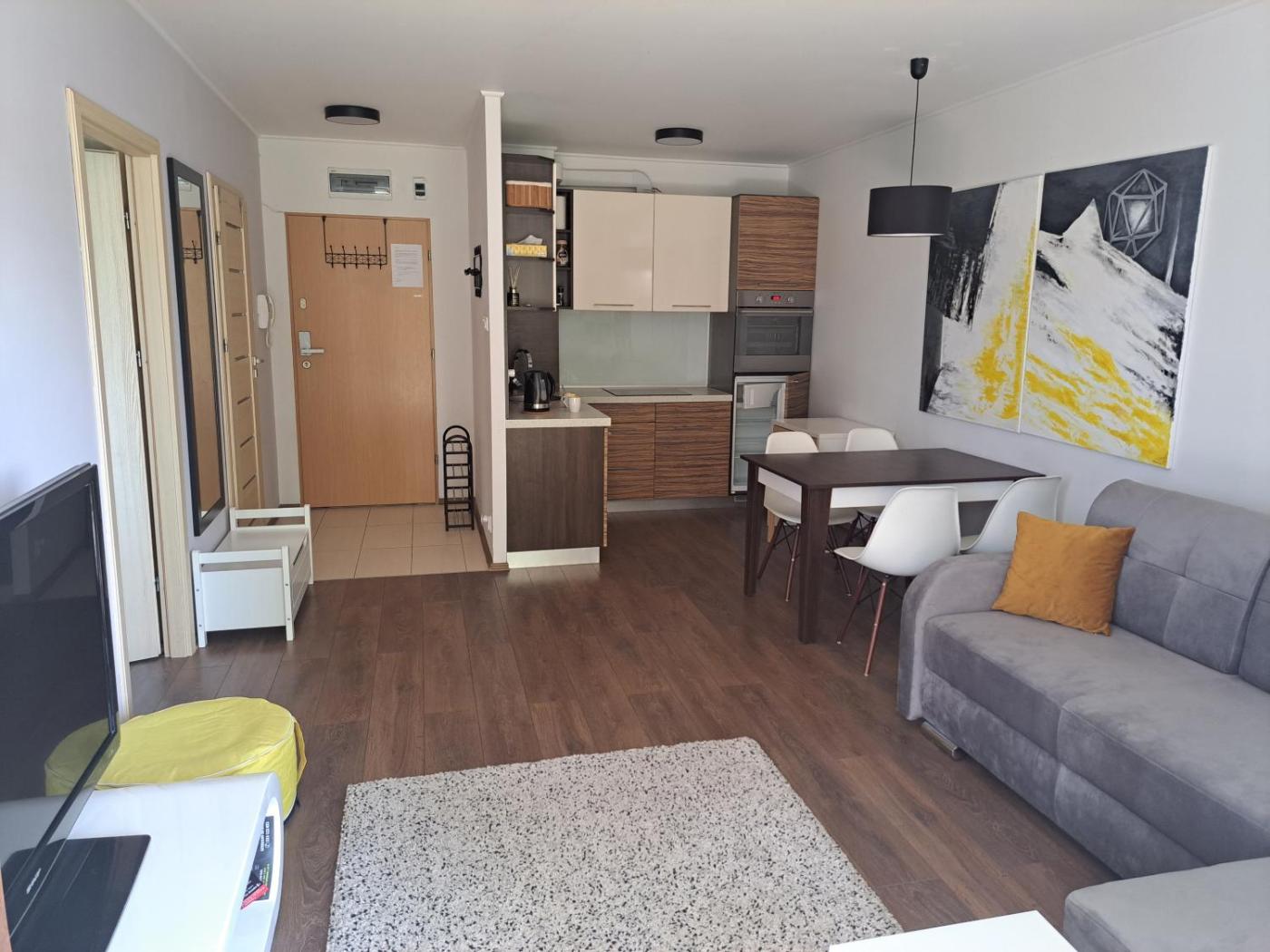 Apartament z 1 sypialnią. This apartment comprises 1 living room, 1 separate bedroom and 1 bathroom with a bath or a shower. In the kitchenette, guests will find a stovetop, a refrigerator, a dishwasher and an electric kettle. This apartment provides a washing machine, a flat-screen TV and a balcony. The unit offers 3 beds. Apartament - 5 osobowy. Powierzchnia pokoju ok.: 42 mkw.