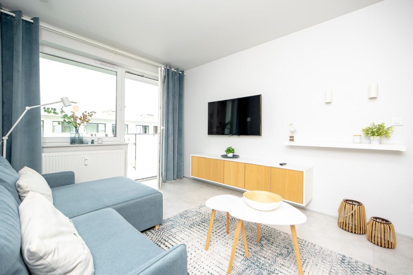 Apartament z 1 sypialnią. This apartment is comprised of 1 living room, 1 separate bedroom and 1 bathroom with a walk-in shower and a hairdryer. Meals can be prepared in the well-fitted kitchenette, which comes with a stovetop, a refrigerator, a dishwasher and kitchenware. Featuring a terrace with ancourtyard view, this apartment also offers a washing machine and a flat-screen TV with streaming services. The unit offers 2 beds. Apartament - 4 osobowy. Powierzchnia pokoju ok.: 40 mkw.