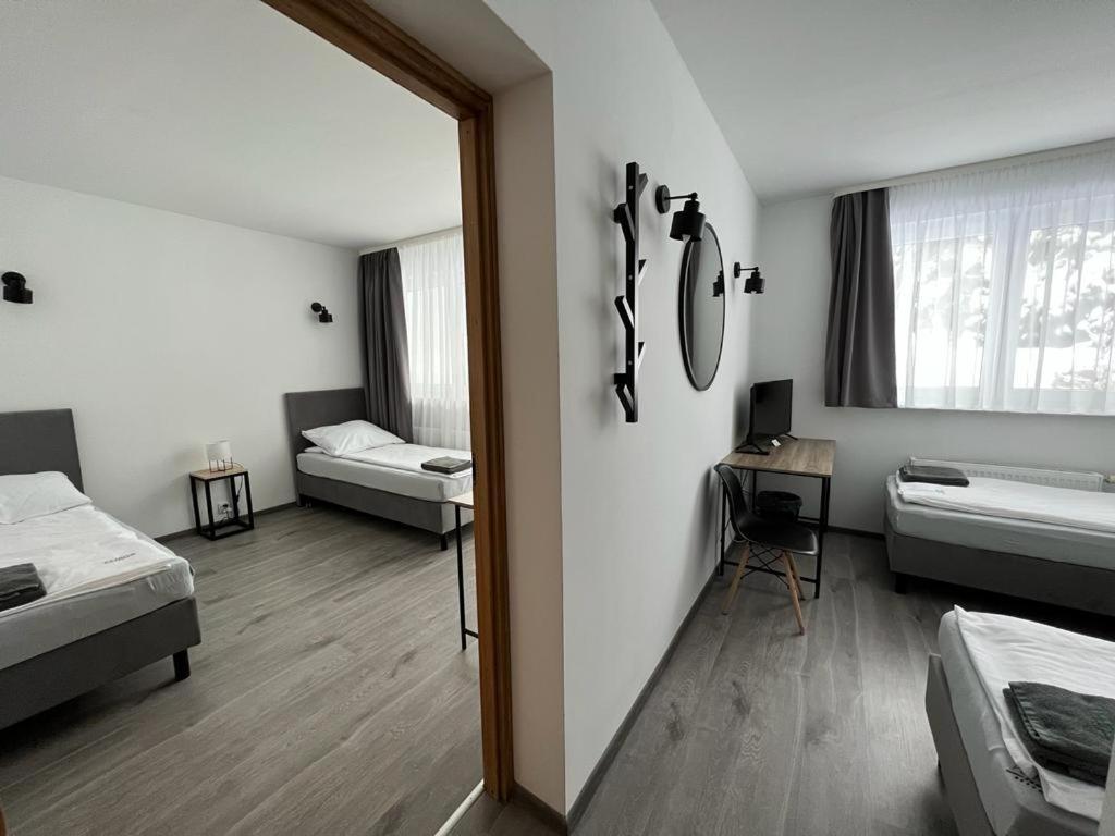 Mały pokój z 2 łóżkami pojedynczymi. Pokój ten dysponuje łazienką oraz częścią wypoczynkową z telewizorem z płaskim ekranem. Wyposażenie obejmuje 2 łóżka pojedyncze i biurko. W tej opcji zakwaterowania znajdują się 2 łóżka. Pokój z 2 łóżkami pojedynczymi - 2 osobowy. Powierzchnia pokoju ok.: 16 mkw. ;