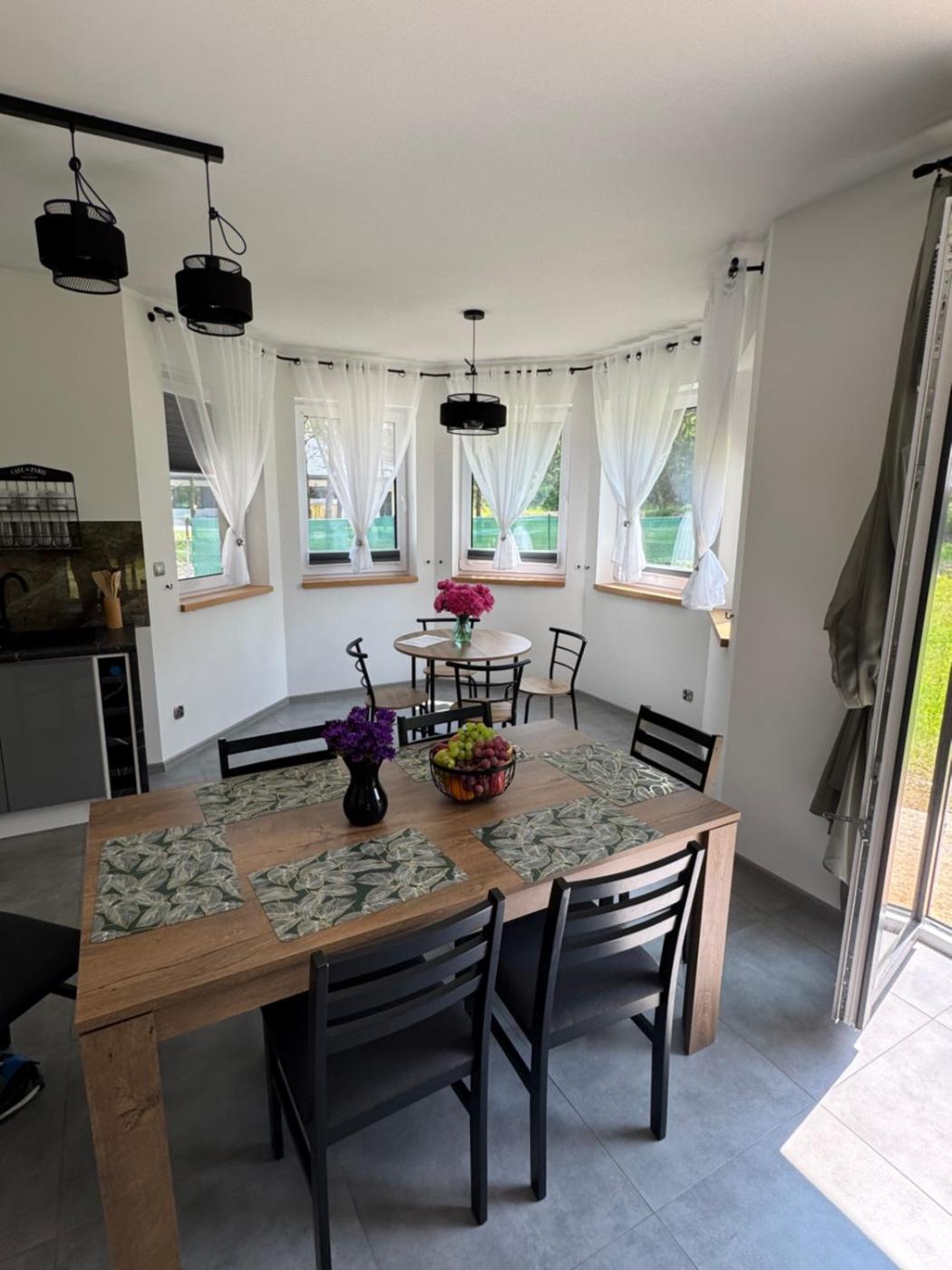 Dom z 4 sypialniami. Guests will find a stovetop, a refrigerator, a dishwasher and an oven in the fully equipped kitchen. The holiday home also offers a barbecue. The spacious holiday home provides a washing machine, a dining area, a terrace with garden views as well as a shared bathroom featuring a shower. The unit offers 13 beds. Dom wakacyjny - 15 osobowy. Powierzchnia pokoju ok.: 120 mkw.